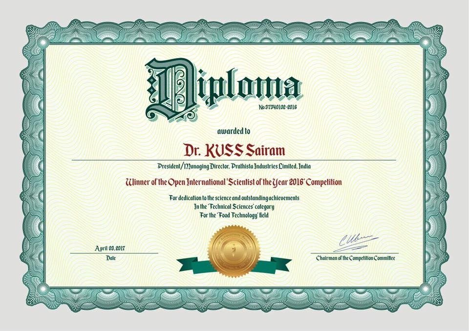 • Awarded honorary Doctorate (PhD) from The University of Chicago, Chicago, US in Project Management along with Scientist of the Year-2016.